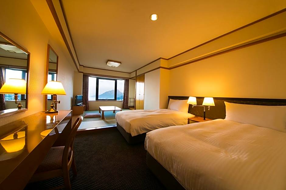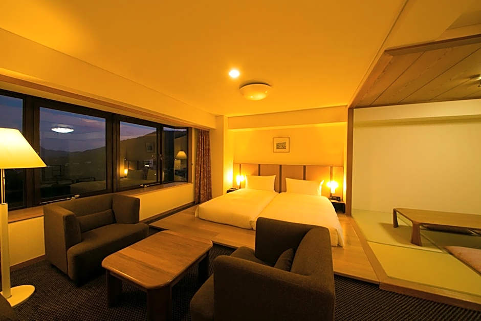 The twin room includes a private bathroom, well-fitted with a bath, a shower, a bidet, a hairdryer and slippers. The air-conditioned twin room provides a flat-screen TV with satellite channels, tatami, a wardrobe and a safe deposit box. The unit offers 2 beds and 3 futons.
